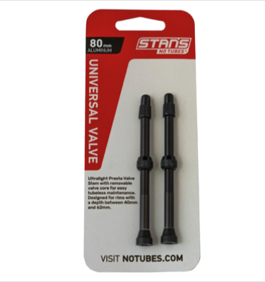 Lightweight aluminum valve stems are half the weight of standard brass models. Secure round base is compatible with most tubeless rims and a perfect fit for all Stan’s BST and BST-R rims. Removable valve core makes adding sealant easy.